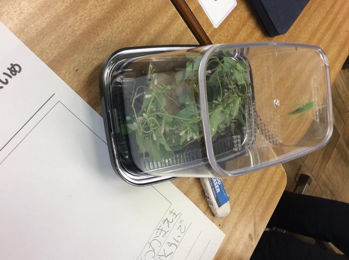 バッタやカマキリなどが捕れました。虫捕りの後は、捕った虫の観察です。特徴をまとめたり絵に描いたりしました。