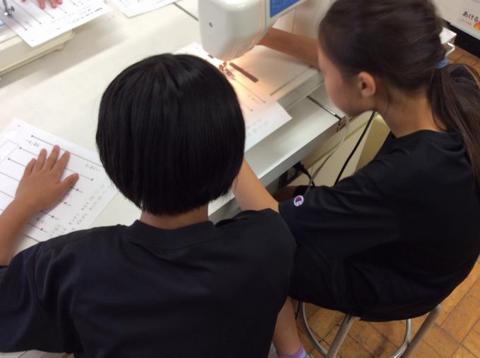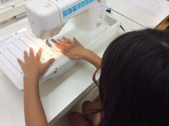 5年生の家庭科の学習では、ミシンを使った制作の学習が始まりました。ミシンを使うのは初めての子が多く、恐る恐る触っていました。この日は、ミシンの初めの一歩、「から縫い」を行いました。厚めの紙に書かれた直線の上を糸を使わずに縫ってみます。糸がないので終わったあと、特に裏返して見ると、ミシン目がしっかりと残っているので、紙の送り方などについて振り返ることができます。「ちょっと曲がっちゃったけど、まあまあかな」などと話しながら、みんなとても真剣に、でも、とても楽しそうにミシンの操作を行っていました。