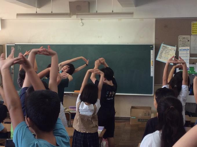 スポーツリズムトレーニング協会のインストラクターの方をお招きし、校歌ダンスをみんなで踊る学習が5年生で行われました。