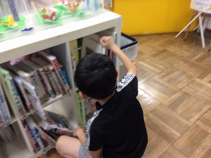 すぐに戻す場所が見つからないこともありますが、みんな慎重に確かめながら、本を元の場所に戻しました。