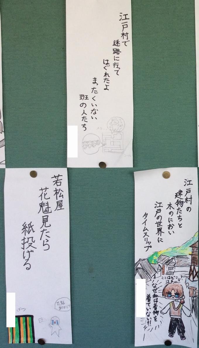 6年生の教室の前には修学旅行の思い出を表した短歌や川柳が掲示してありました。