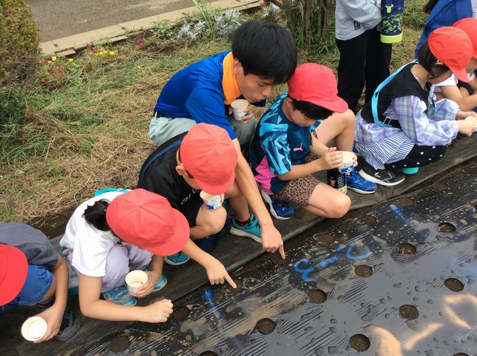 「種まきしたから毎日様子を見に来なくっちゃ!」という2年生の声に、「大丈夫だよ、私たちがちゃんと見ておくから、次は、収穫の時に来てね」という高校生からの頼もしい返事も。