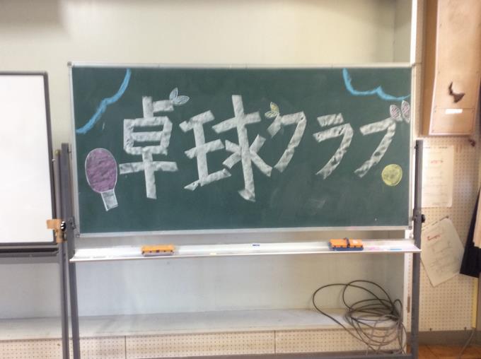 (↑卓球クラブは、この黒板を背景に、卓球台を入れての撮影)