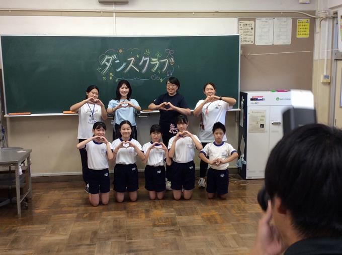 (↑ダンスクラブの撮影の様子。みんなで、ハートマーク♡)