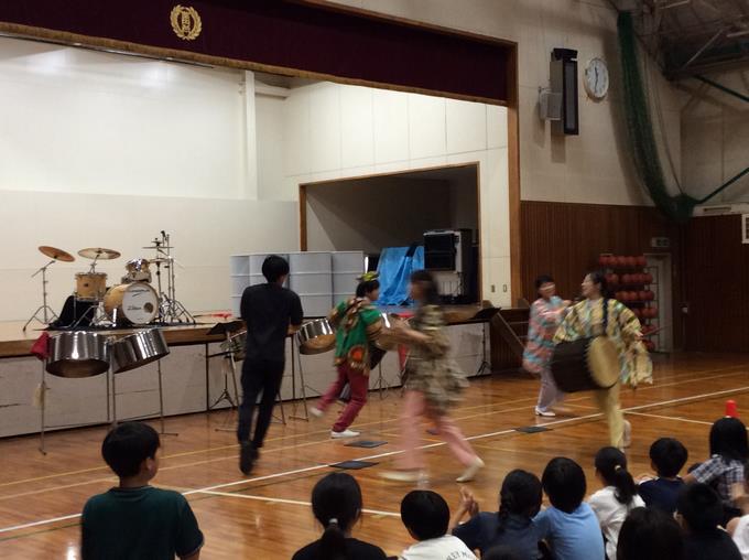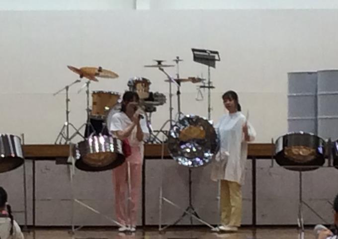 スティールパンバンド「PAN NOTE MAGIC」のみなさんをお招きし、スティールパンの演奏を1~3年生部、4~6年生部と分かれて聴きました。