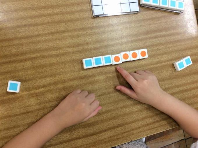 計算方法を説明しやすいように、数図ブロックを活用しました。