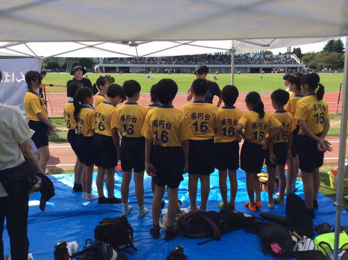午前中は薄曇りでしたが、薬円台小が参加する午後の部になると晴れて、強い日差しに。