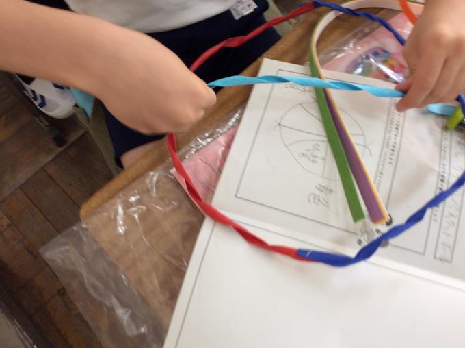 4年生は図工の時間に紙ひもを使って形づくりをしています。
