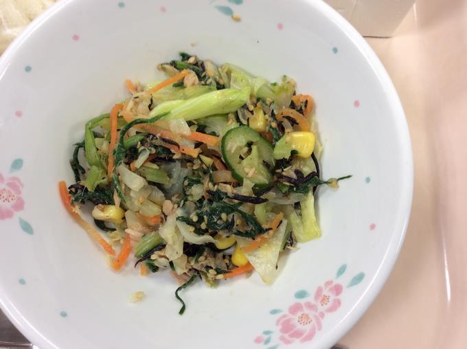 その小松菜が今日の給食でサラダとして提供されました。