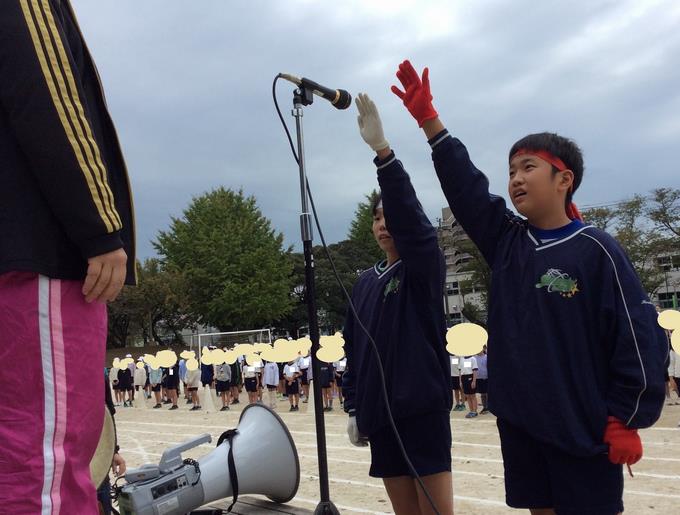 応援合戦の練習では、毎日練習を重ねている応援団の児童のリードで全校の子供たちも大きな声を出して応援していました。