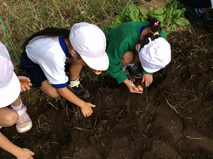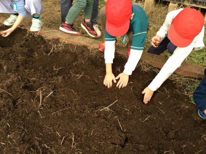 学校の花壇に球根を植えるという活動です。