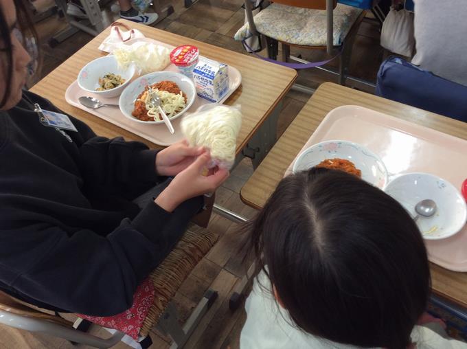 1年生と6年生の「わくわくフェスティバス」はすでに終わりましたが、6年生から「1年生とさらに仲良くなるために一緒に給食を食べたい!」という声が上がり、実施となりました。ペア同士で隣に座り、話をしながら和やかな雰囲気で食事をしました。見ているこちらも心がほっこりするひとときでした。