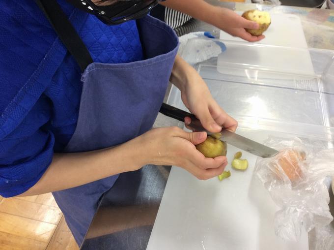 ゴツゴツしたジャガイモの皮をむくところからスタート。