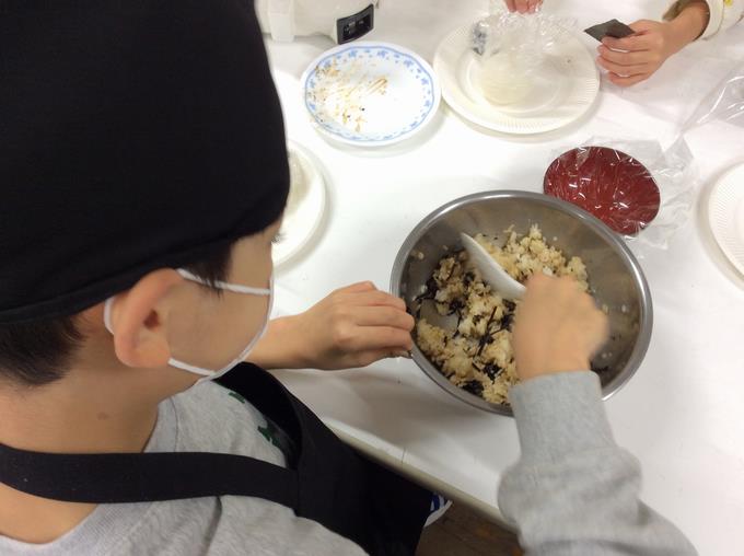 一方、ひまわり学級ではおにぎりを作りました。