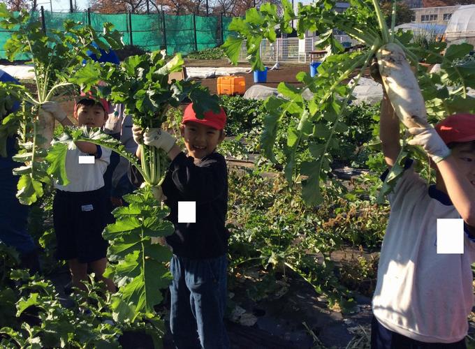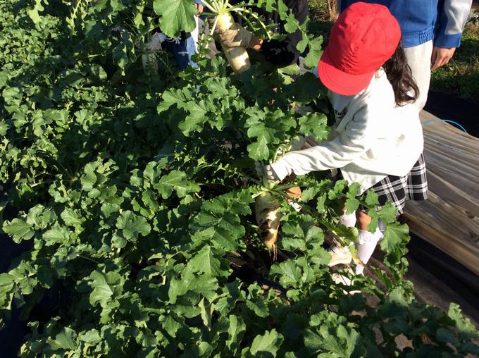 1ヶ月前に見学した時より大きくなった大根を見て、「これ、みんな大根なの?」と驚いている子供たちもいました。