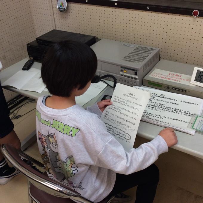 放送委員会の子供たちが考えた企画で3年生以上の希望者に昼の放送の一部を行ってもらうというものです。