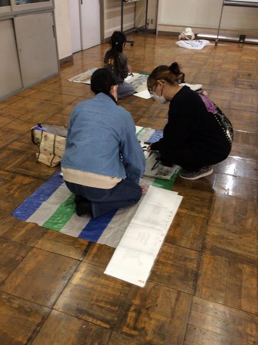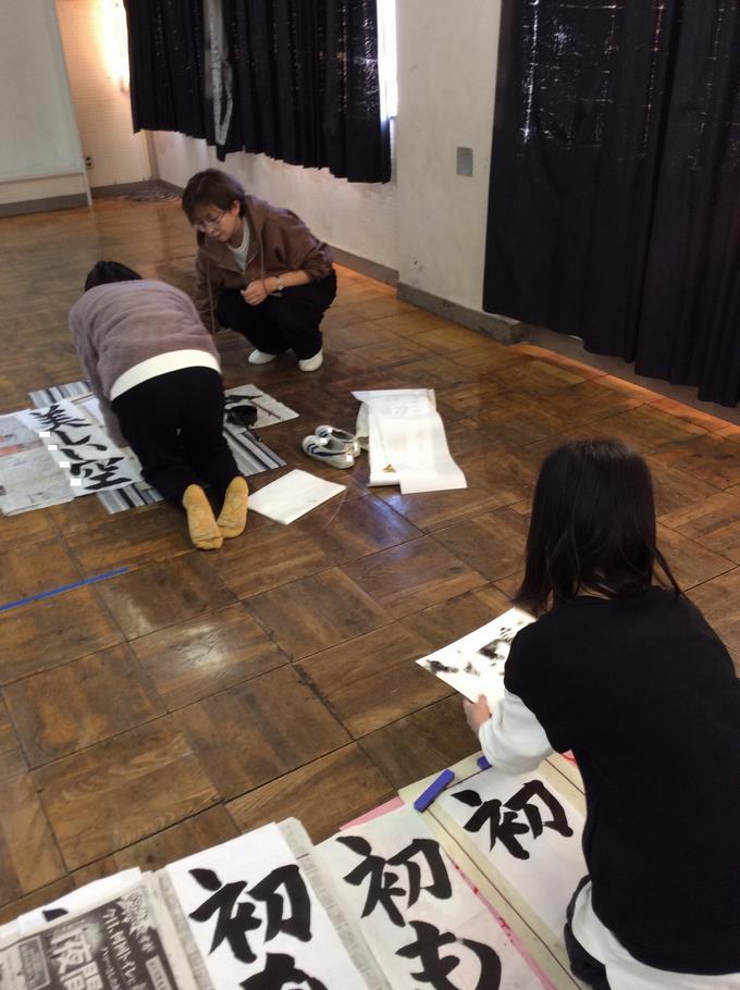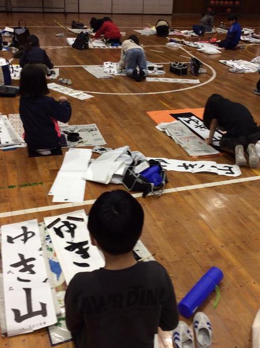 今年は暖房の効いた体育館で学年ごとに席書会を行いました。