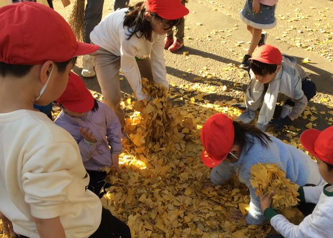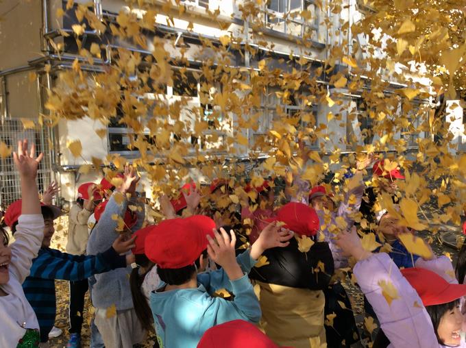 12月1日(月曜日)いちょうの葉っぱで遊んだよ(1年生)