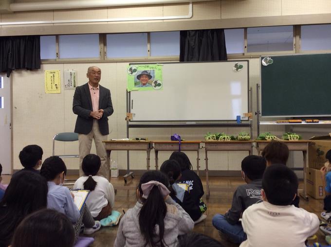 3年生の総合的な学習の時間に船橋市内で小松菜を作ってらっしゃる「ひらの農園」の平野代一さんがゲストティーチャーとして来校してくださいました。