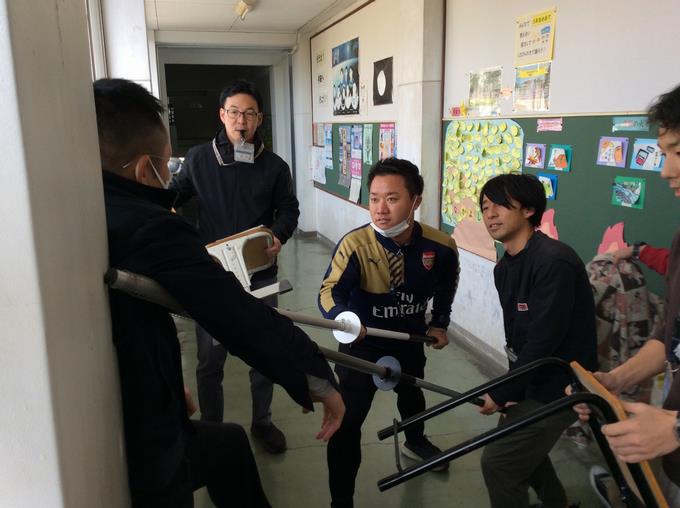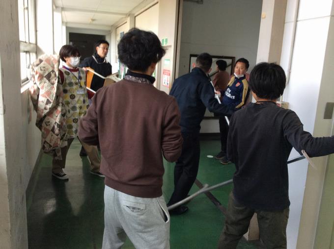 男性の先生方は、侵入した不審者(この日は警察署の方がその役を担ってくださいました。)を制圧するために現場に駆けつけました。