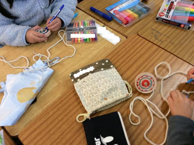 一方、1年生のあるクラスは、冬休みに取り組む予定のコマに模様を描いていました。