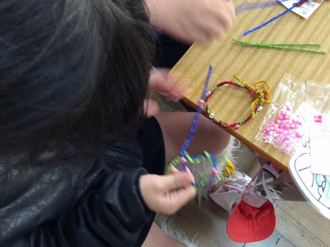 なのはな学級の2組では、モールを使ってクリスマスの飾りを作っていました。