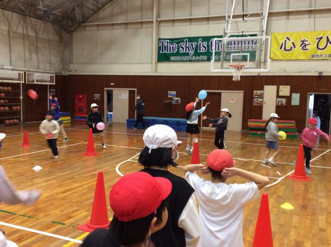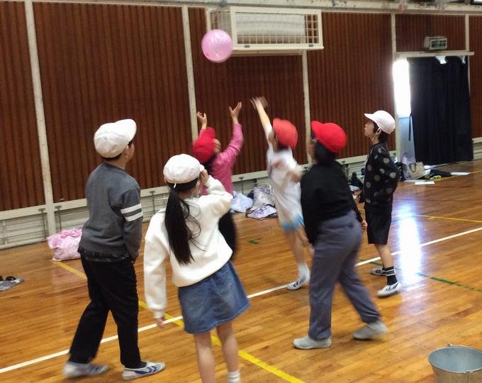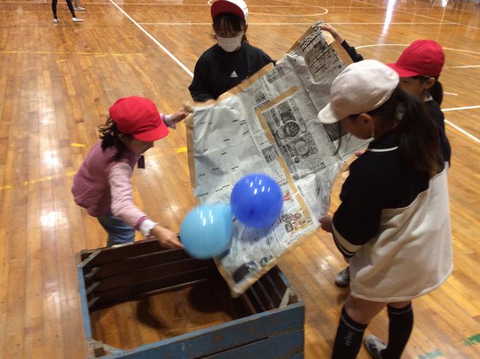 第2部は4年生の各クラスが考えた風船のゲームをみんなで行いました。