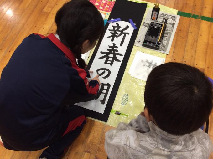 12月18日(木曜日)高校生は習字の先生!(6年生)