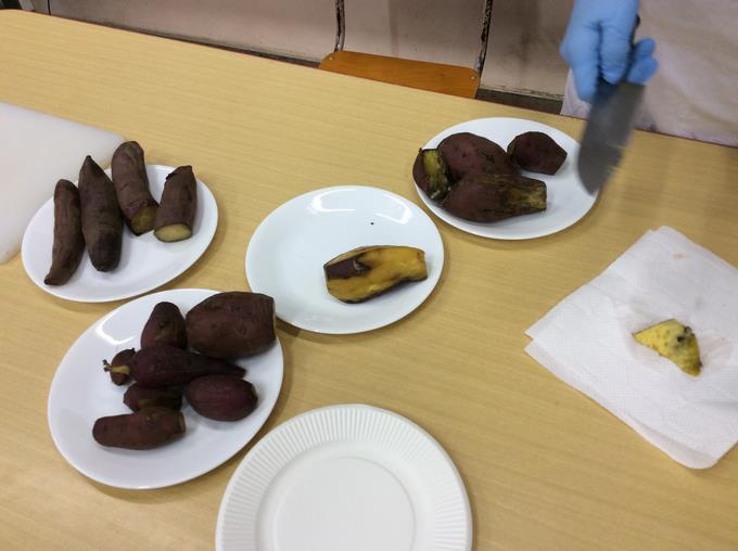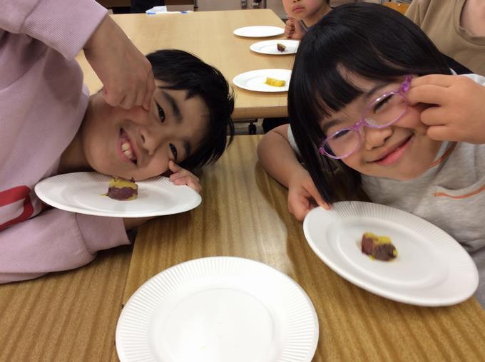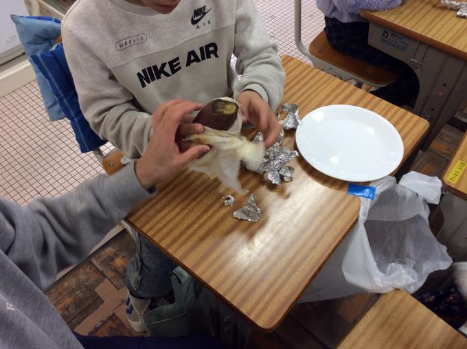 5時間目に「やきいも」という予定だったので、教室を覗くと、焼き芋ができあがっていました。