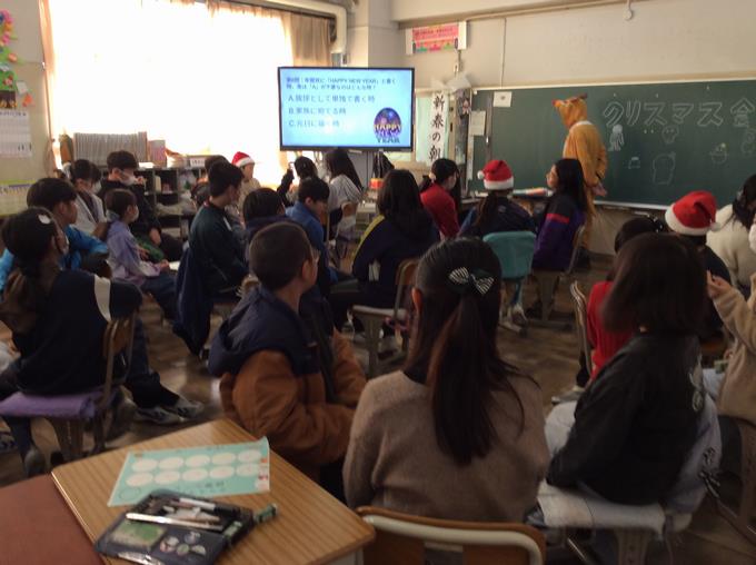 教室を巡っていると、年末年始に向けた飾りづくりに多くの学級で取り組んでいました。