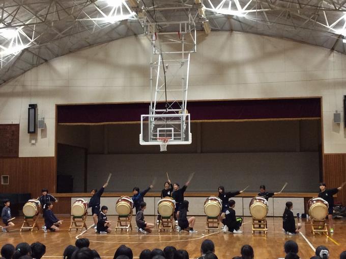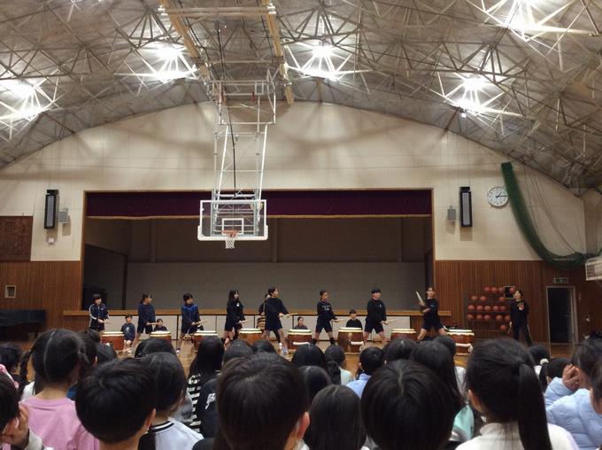 クラブ活動で行っている太鼓クラブが練習の成果を発揮する恒例の発表会が体育館で行われました。