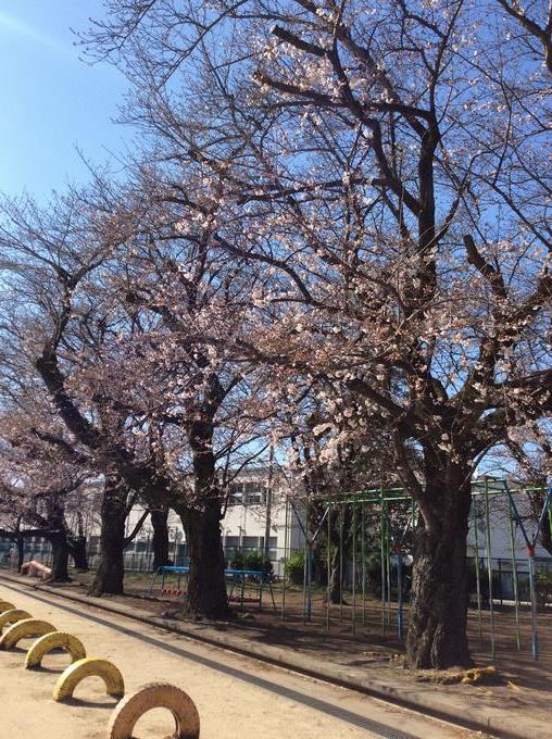 学校の桜が咲き出しました。