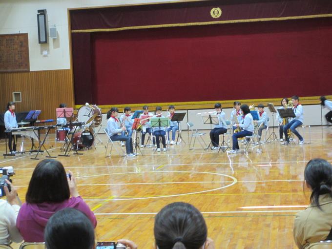演奏会は、第1部「楽器紹介」第2部「私たちのお気に入り!」の2部構成で行われました。第1部では、各パートごとの楽器と今年度の目標を紹介した後にそれぞれ違った曲を演奏しました。第2部では、最近流行りの曲を6年生を中心として演奏しました。終わりに卒業生が一人ずつ挨拶をしましたが、その内容や態度がとても素晴らしく感動しました。