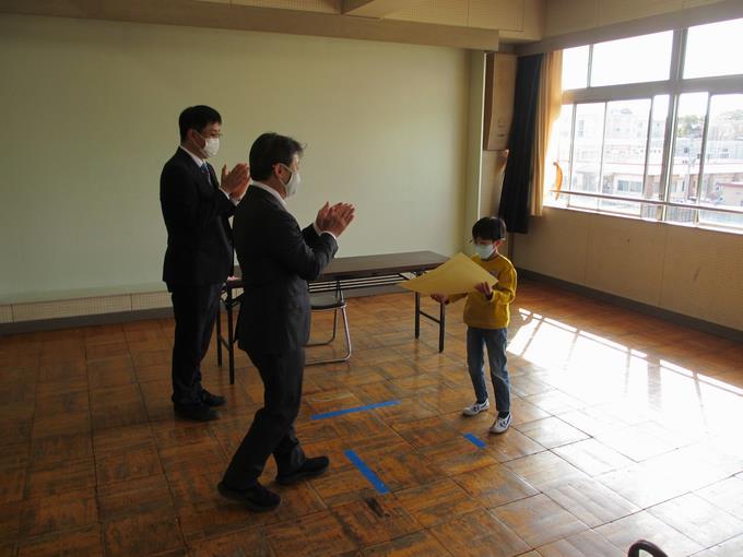 卒業式予行のあと、表彰式を行いました。今回は、千葉県書初め展、税に関する絵はがきコンクール、そして皆勤賞の賞状を授与しました。受賞者のみなさん、おめでとうございます。