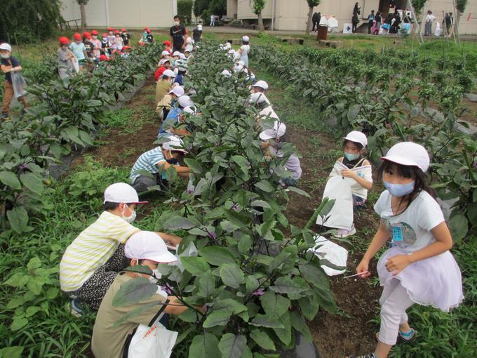 1年生が薬園台高校の畑にナスの収穫に行きました。久しぶりに見たナスはとても大きく育っていてみんなびっくりしていました。ハサミでの収穫に少し苦労しましたが、楽しそうでした。