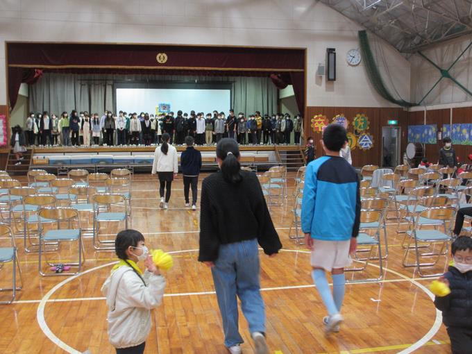 6年生の卒業を祝い、感謝の気持ちを伝える「卒業を祝う会」が児童会主催で行われました。4・5年生新役員の上手な運営で会が進められました。