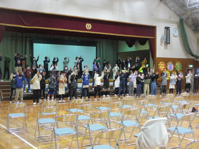 4年生は皆黒い服に身を包み、アップテンポの曲に合わせてノリノリのダンスを披露した後、ブラックライトを使用したハンドダンスを全員で行いました。会場の照明が落とされそこに浮かび上がる美しくそろえられた動きは、まさに「特別なエール」となりました。