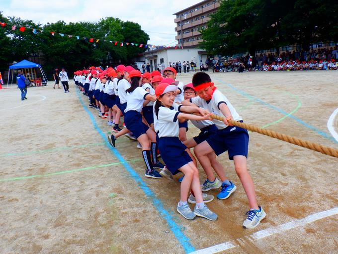 5月21日(日曜日)、心地よい風の中、第50回の記念すべき運動会が開催されました。学校長からは、「最後まであきらめずに走ろう!友達を声に出して応援しよう!運動会ができることに感謝しよう!そして、『心の1等賞』をめざそう!!」という話がありました。6年生の選手宣誓は、気持ちが入っていて、広い校庭に大きな声が響き渡りました。