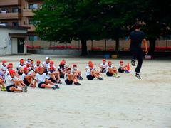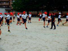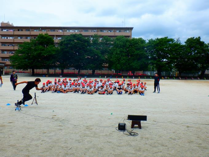 コーチはスーパーマリオが雲の上をスキップするようなお手本を見せてくれたり、子どもたちと競争してくれたり、子どもたちにとって充実した学習になりました。秋の市民陸上大会では、薬南小の子どもたちが大活躍するかもしれません。