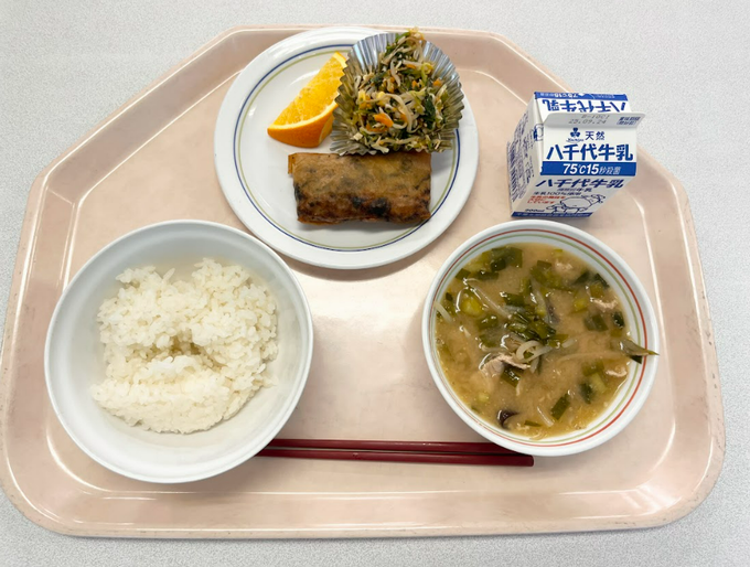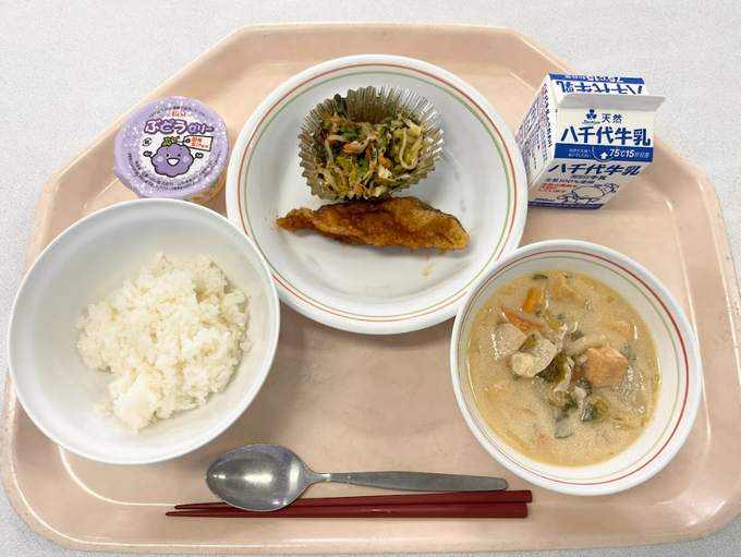 【A献立】ご飯 めひかりの竜田揚げ 小松菜のおひたし 豚汁 みかんゼリー