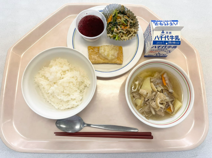 【A献立】ご飯 鱈の揚げびたし おかか和え ごま豆乳みそ汁 ぶどうゼリー