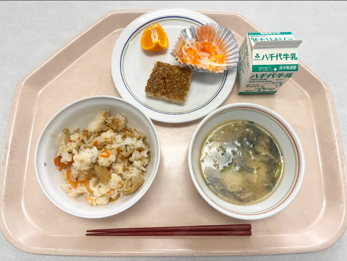 ⑴食(学校給食)を通し、体に必要な栄養について理解させ、自主的に健康管理ができる力を育てる。