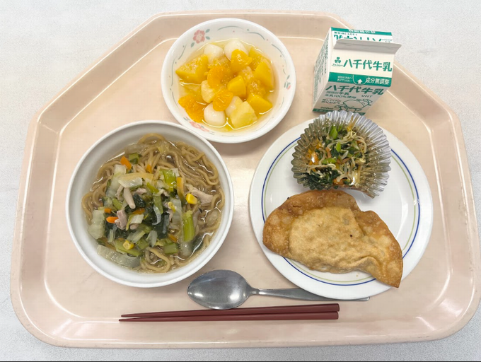 【B献立】塩ラーメン にんじん揚げぎょうざ 三食ナムル フルーツ白玉