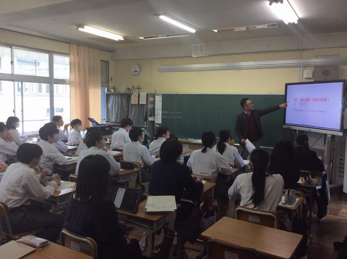 今日の授業のテーマは「社会参画」でした。 生徒たちは齋藤先生とは初対面でしたが、そのパワフルさに圧倒され、1つ1つの発問についてよく考えていました。