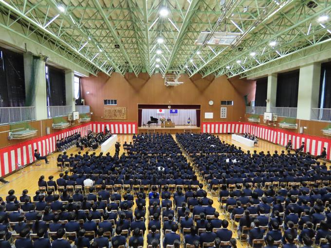 本日から学校が始まり、着任式と始業式が行われました。校内の桜も満開で、進級した生徒たちを温かく迎えていました。