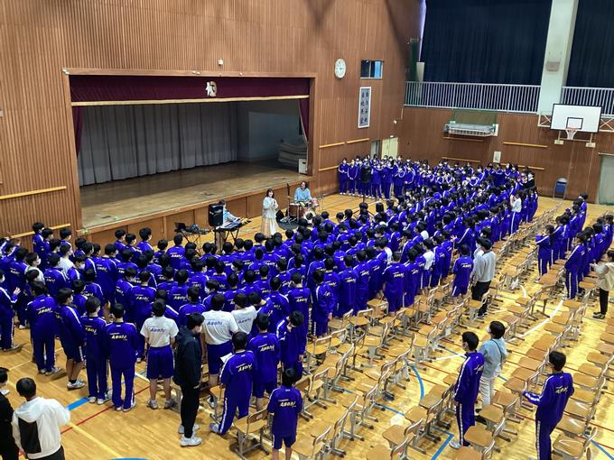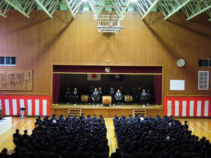 第二部では、「郷嵐會」の方々が和太鼓の演奏を披露してくださり、生徒たちは合いの手も交えて和太鼓の迫力ある音を楽しんでいました。