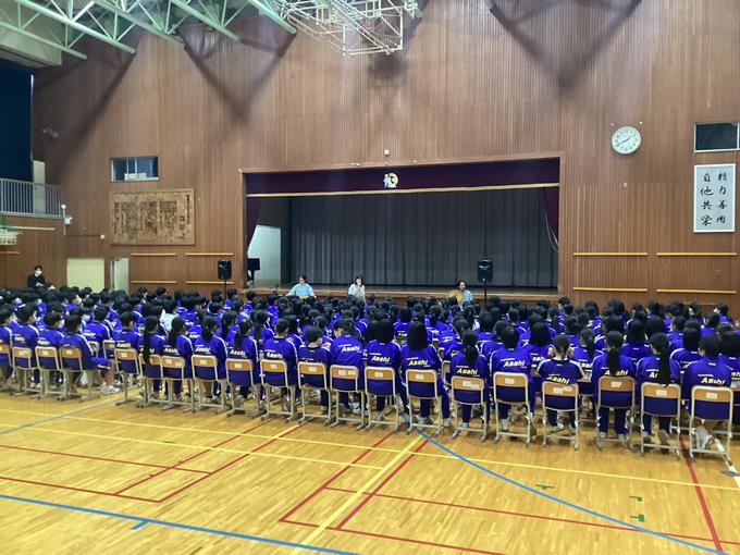 この日は生徒会の役員選挙が行われました。生徒会本部役員に立候補した生徒が全校の前で意気込みなどを話し、投票を行いました。新しく本部役員になった生徒の皆さんにはよりよい旭中にするために頑張ってほしいです。