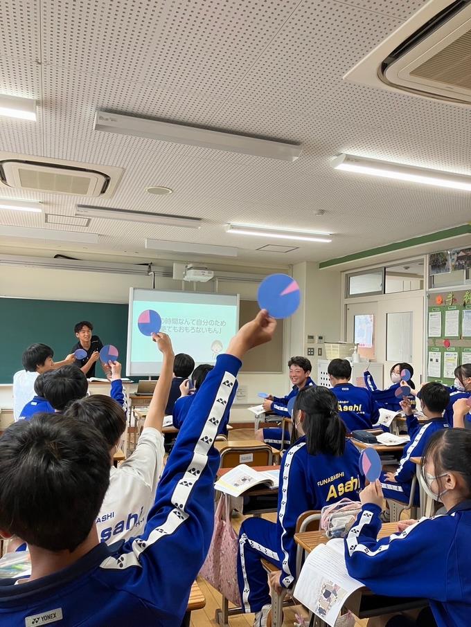 この回はすべての学年が教科書外の道徳を行いました。教科書外の内容だったので生徒たちは興味をもって授業に取り組んでいました。