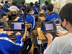 今回の教材は動画で、2つの意見に分かれるものだったので生徒たちの議論も活発に行われ、盛り上がっていました。また、あるクラスでは体育館で授業を行い、各クループに分かれて討論を行っていました。