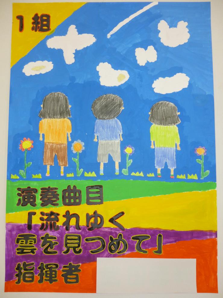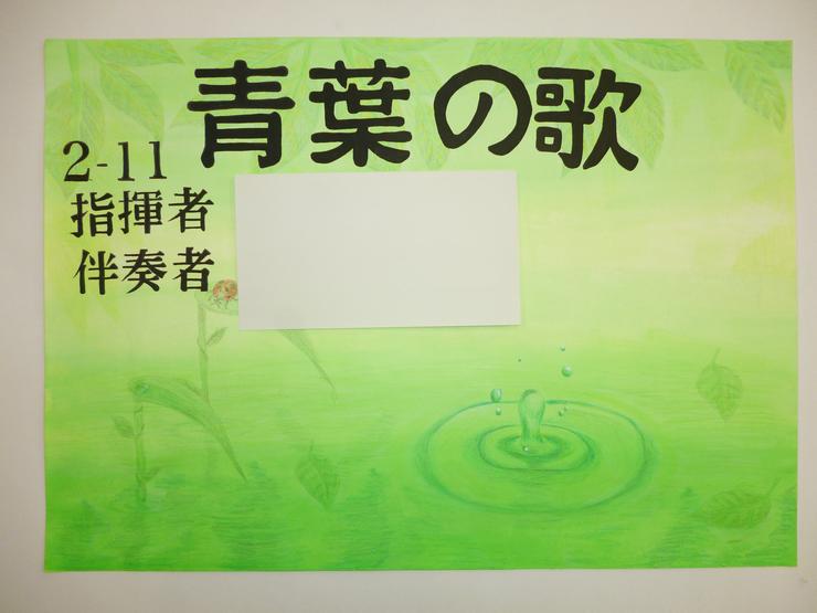 【ポスター賞】各クラス、歌のイメージを考え趣向の凝らしたポスターを制作しました。(写真左上は1組、右上は1年5組、左下は2年11組、右下は3年11組)